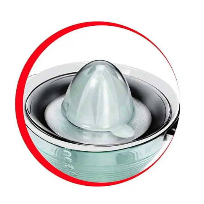 تتميز عصارة البرتقال الكهربائية مولينكس بفلتر معدني مقاوم للصدأ، مما يضمن أداءً طويلاً وفعالاً دون القلق من التآكل أو التأثيرات السلبية على جودة العصير. يوفر هذا الفلتر تصفية مثالية لللب والشوائب، ليمنحك عصيراً ناعماً ونقياً في كل مرة. بالإضافة إلى ذلك، يساهم الفلتر المقاوم للصدأ في الحفاظ على نظافة العصارة وسهولة تنظيفها بعد كل استخدام.