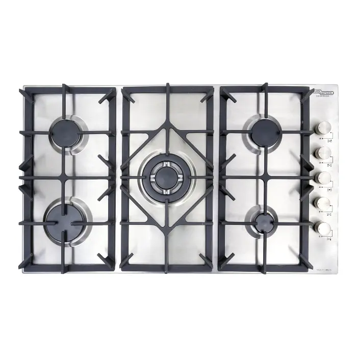 تم تزويد موقد غاز بخمس شعلات غاز متنوعة الأحجام لتناسب جميع أنواع الأواني وأغراض الطهي. سواء كنت تستخدم قدرًا صغيرًا لتسخين الحليب أو مقلاة كبيرة لقلي الطعام، ستجد الشعلة المناسبة التي توفر توزيع حرارة فعال وسريع.