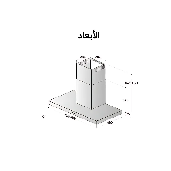 • قوة الشفط: حوالي 990 م³/ساعة — أداء جيد لإزالة الأبخرة والروائح في مطبخك.