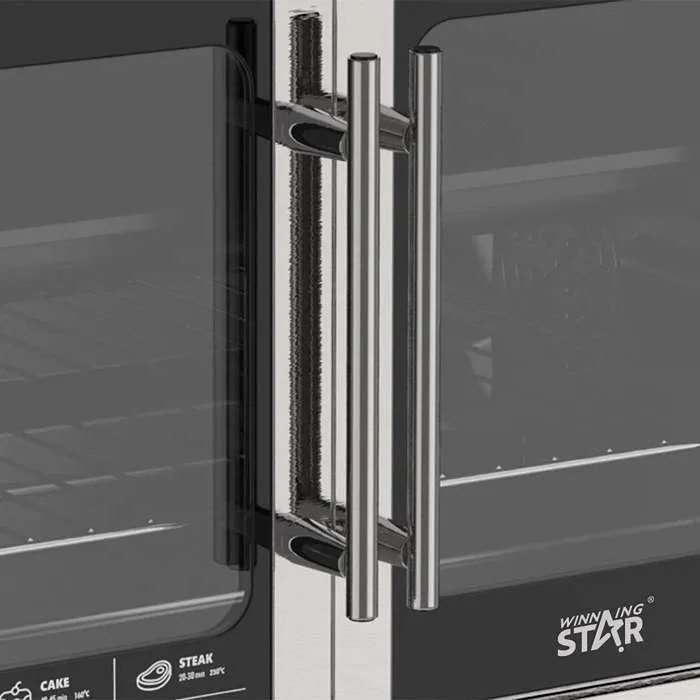 يتميز فرن كهربائي صغير ويننج ستار بهيكل خارجي من الستانلس ستيل عالي الجودة، يمنحه متانة كبيرة ومقاومة للصدأ مع مرور الوقت، ما يجعله مناسبًا للاستخدام المكثف في المنازل. إلى جانب المتانة، يضيف الهيكل لمسة أنيقة وعصرية للمطبخ، مما يجعله قطعة جمالية بالإضافة إلى كونه جهاز عملي. هذا التوازن بين الشكل والمتانة يعكس جودة التصنيع والاهتمام بأدق التفاصيل.