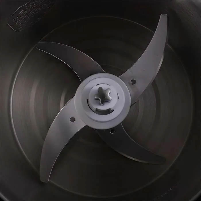 - أربع شفرات فولاذية حادة لتقطيع دقيق ومتساوٍ