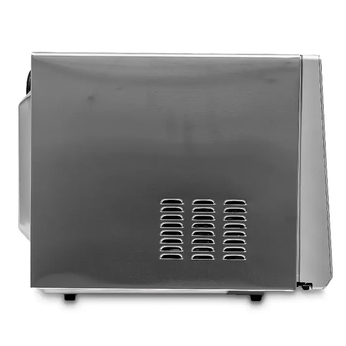 ميكرويف يوجين يأتي بتصميم خارجي أنيق باللون الفضي المصنوع من الستانلس ستيل المقاوم للصدأ، مما يمنحه مظهراً حديثاً يلائم المطابخ العصرية والكلاسيكية على حد سواء. يعكس التصميم الجودة العالية ويضفي لمسة فاخرة على مساحة المطبخ، إلى جانب كونه سهل التنظيف ومتين للغاية.